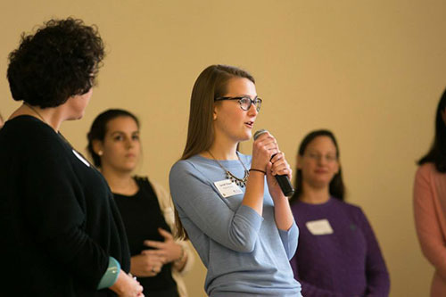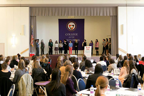 Margaret Freije, Holy Cross’ first female vice president for Academic Affairs and dean of the College, offered a great welcome. A lively icebreaker led by Kim Miles of Miles in Heels Productions, a financial advisory practice, served as the perfect way to start the day as it broke the awkwardness that can sometimes happen when sitting at a table with people who don’t know each other.