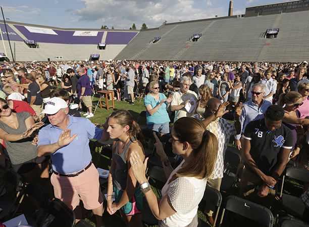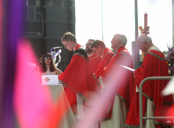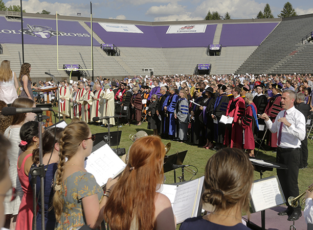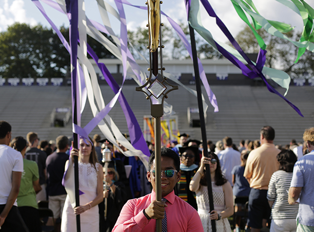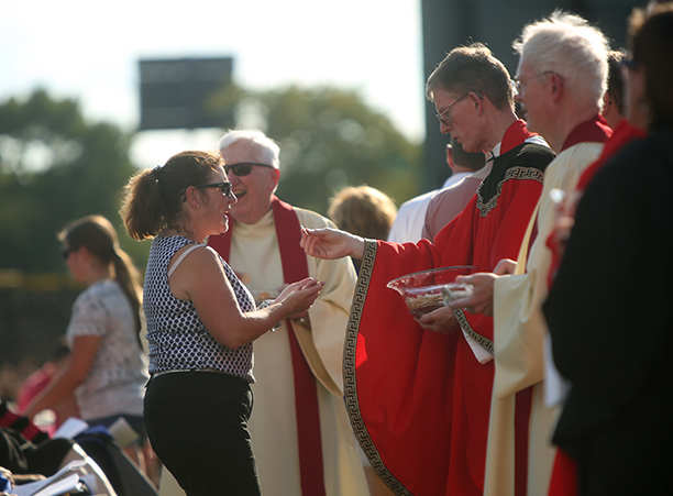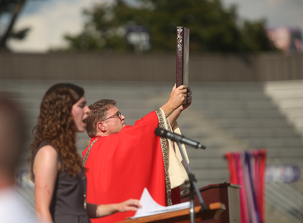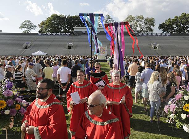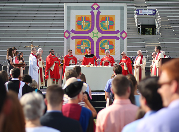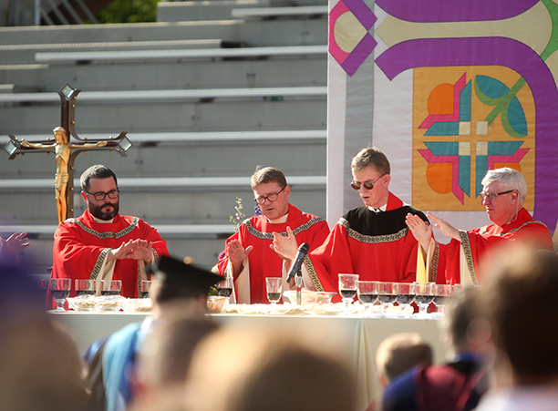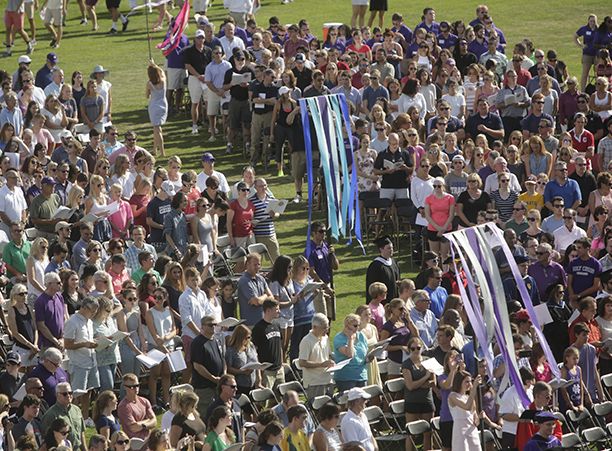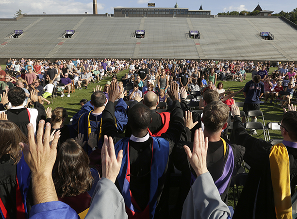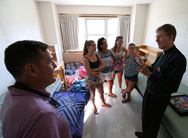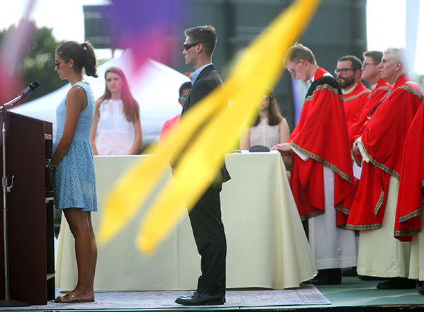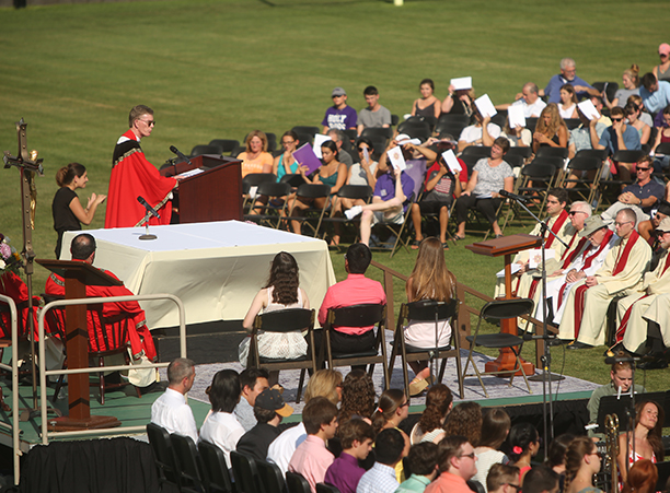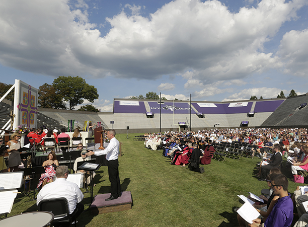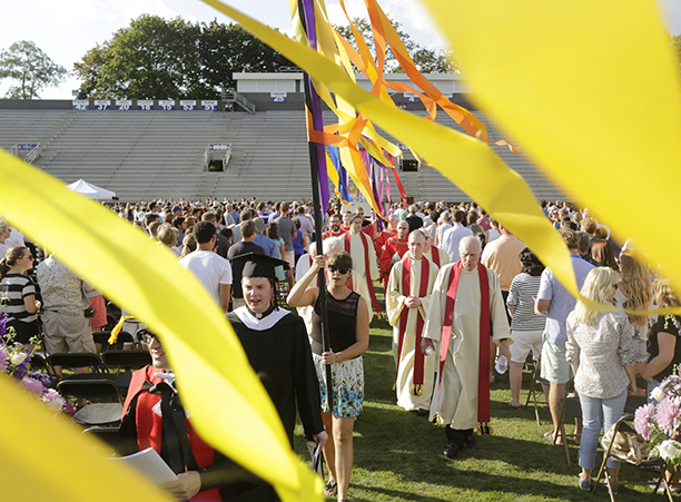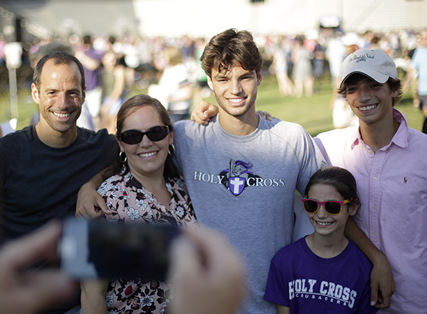 In the afternoon, the commotion of move-in day was replaced with reflection during the traditional Mass of the Holy Spirit on Fitton Field. Rev. Philip L. Boroughs, S.J., president of Holy Cross, formally welcomed new students, and their families, of all faith traditions to the College as the new year was inaugurated. The Mass concluded with the blessings of the new students by parents and faculty, a Holy Cross tradition.