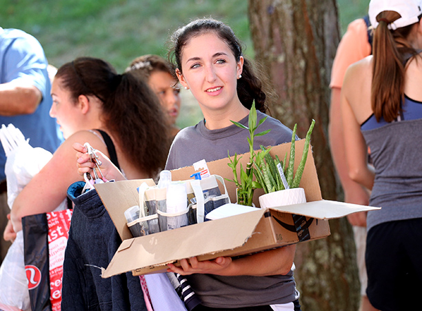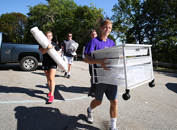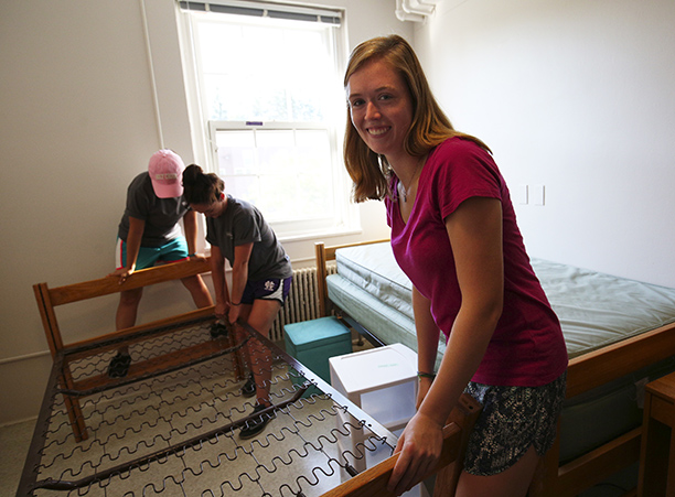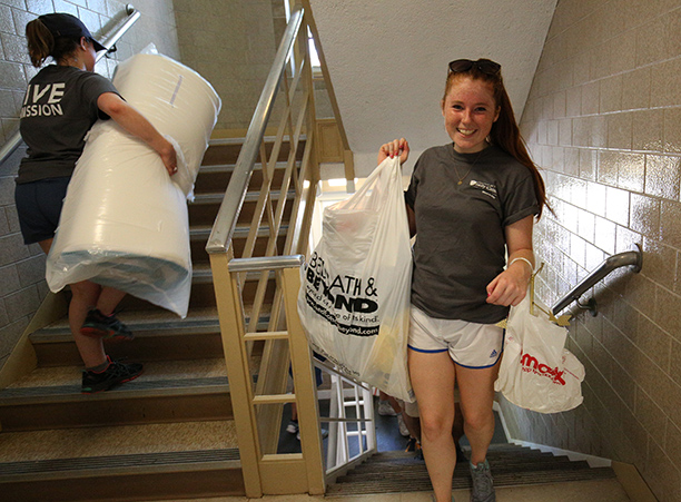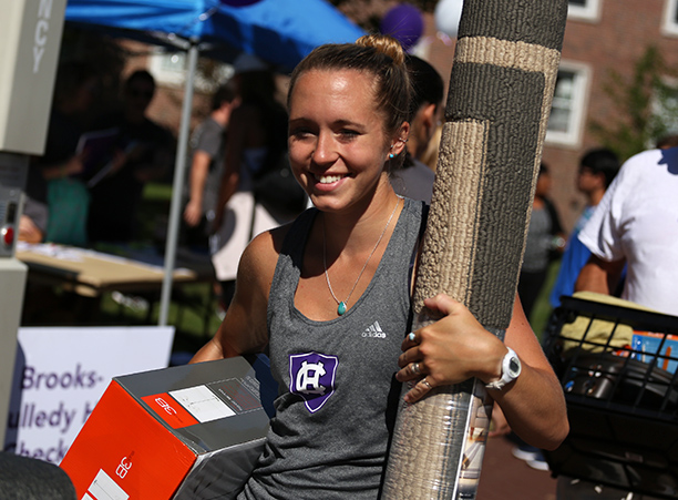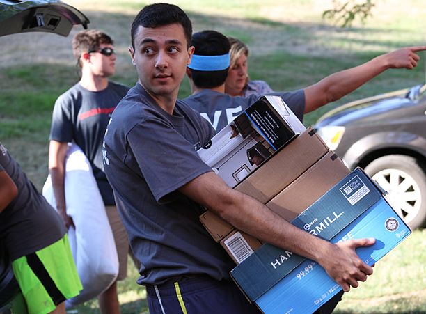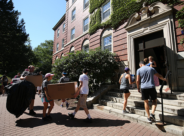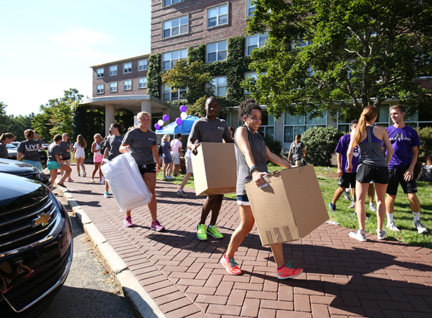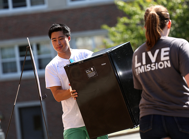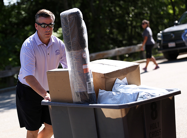 In addition to unpacking, students took care of business needs, such as completing a first-year student survey and receiving their Holy Cross IDs. Receptions for new students and their families took place in the Hogan Campus Center Ballroom.