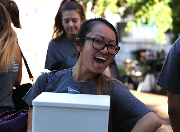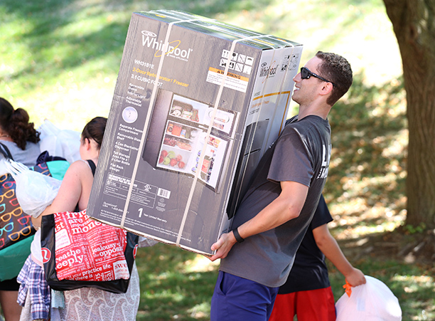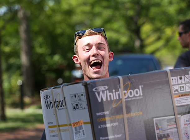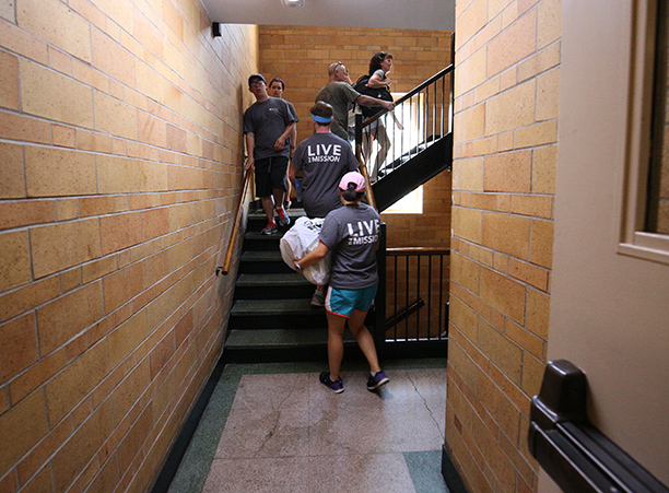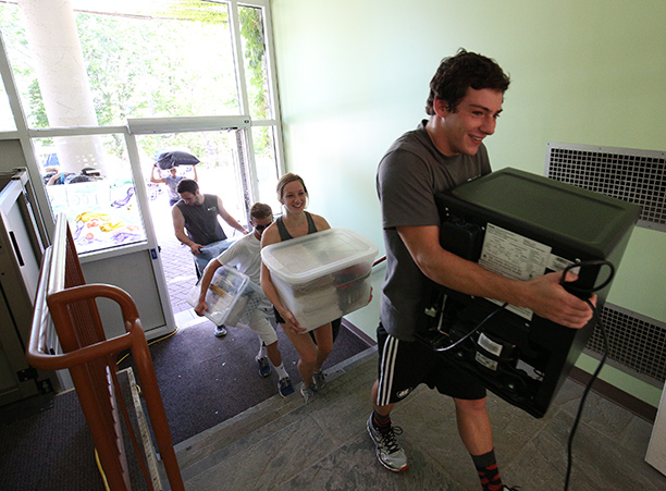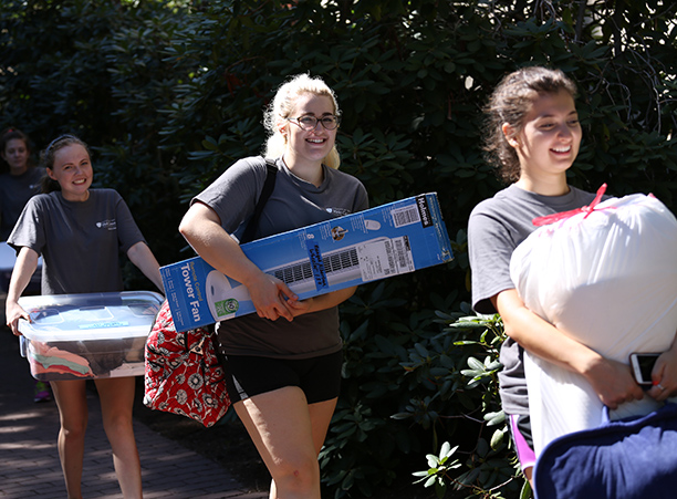 The cheering, gray T-shirt wearing volunteers helped move each student into their new residence halls, where they began to settle in, get to know their roommates, and meet other members of their class.