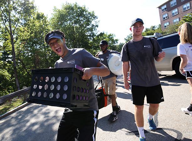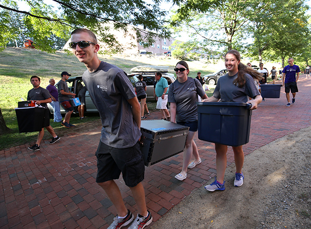 Up College Hill and through the gates of campus, cars filled with books, bins, and eager first-year students arrived at the College of the Holy Cross on a sunny Aug. 27.