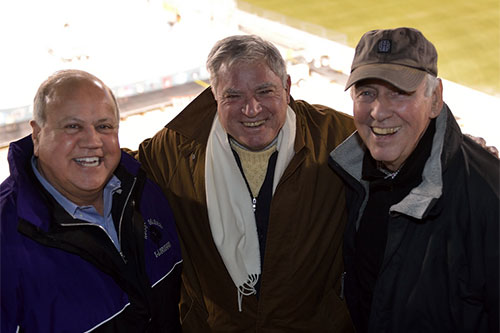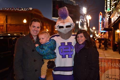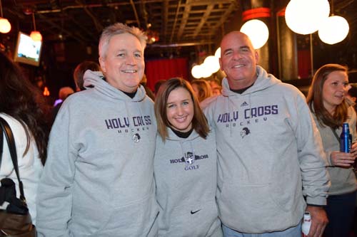 Before the game, 500 alumni, family and friends packed Bill's Bar and Lansdowne Pub for a pregame reception. Even The Crusader braved the cold and made his way to Fenway Park to greet the fans and cheer on the team. The event was hosted by the Crusader Athletics Fund, Holy Cross Clubs of Greater Boston and New Hampshire and Office of Alumni Relations.