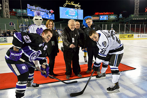 Thousands of fans cheered on the Holy Cross men’s ice hockey team as it faced off against Bentley University to kick off Citi Frozen Fenway 2014 on Dec. 28.