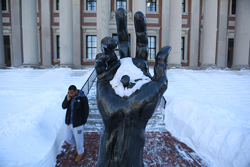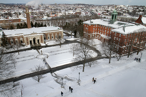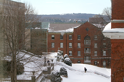 The massive storm also was the reason the College canceled classes on Jan. 27 and required only essential employees to brave the weather and report to work. Among the essential employees: members of the College grounds crew, who cleared out the nearly three feet of snow dumped by the storm.