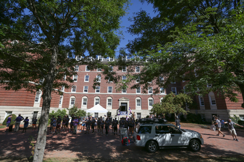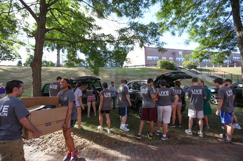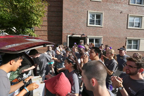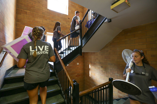 Members of the first-year class were greeted by 200 student leaders, athletic teams and alumni who helped move them into their residence halls.