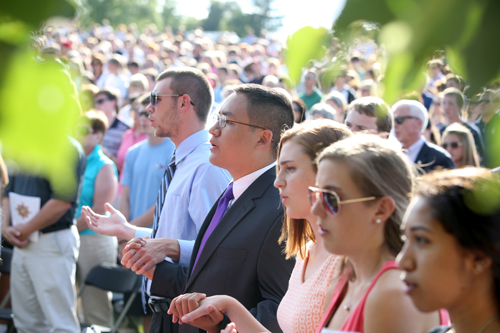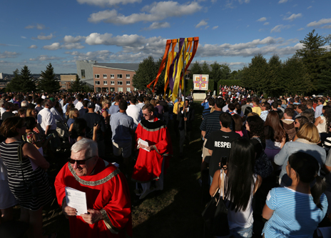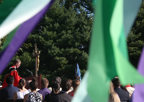 The beautiful weather continued into the afternoon for the traditional Mass of the Holy Spirit on the Hart Center Lawn to inaugurate the new academic year. Led by Rev. Philip L. Boroughs, S.J., president, the Holy Cross community welcomed members of the Class of 2018, transfer students and their families.