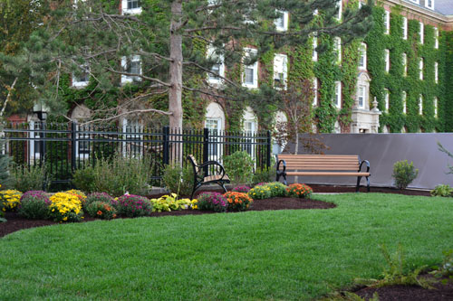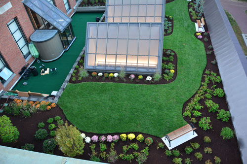 The garden, located over the west wing of the library, is a new serene outdoor space for students to study and congregate, overlooking the hills of Worcester. The renovation of the previously unused space was made possible with donations from the Class of 1990 in celebration of their 25th reunion.
