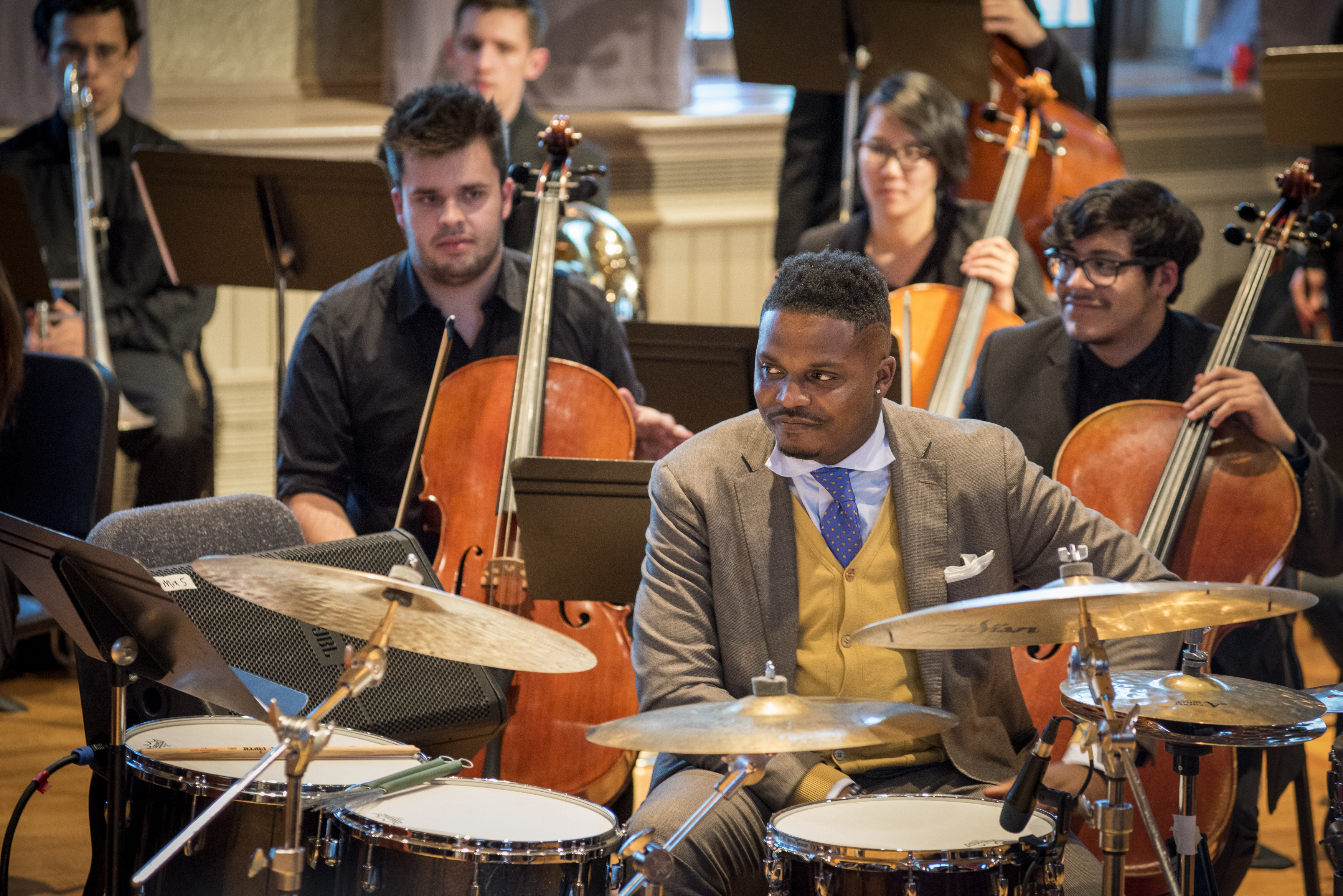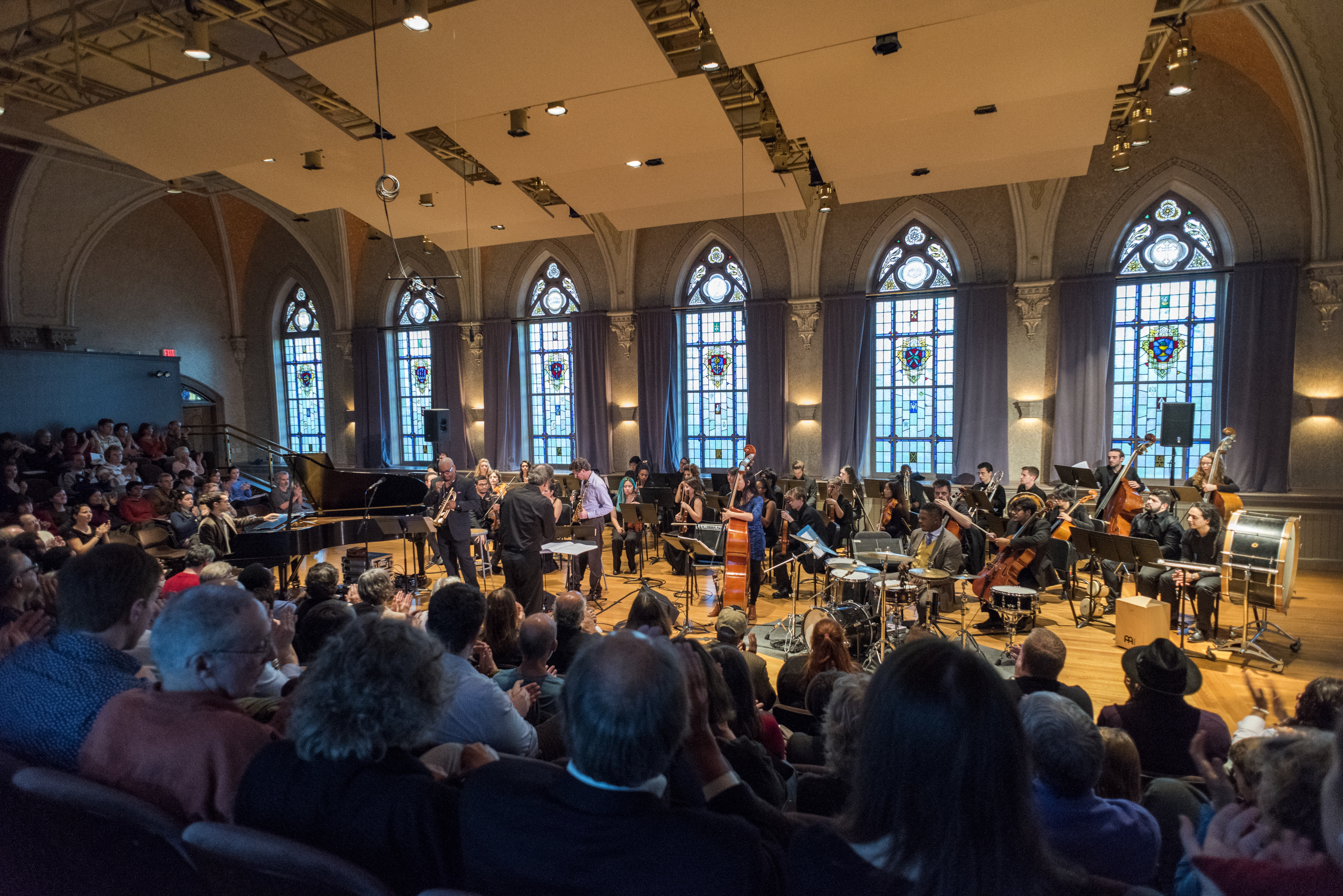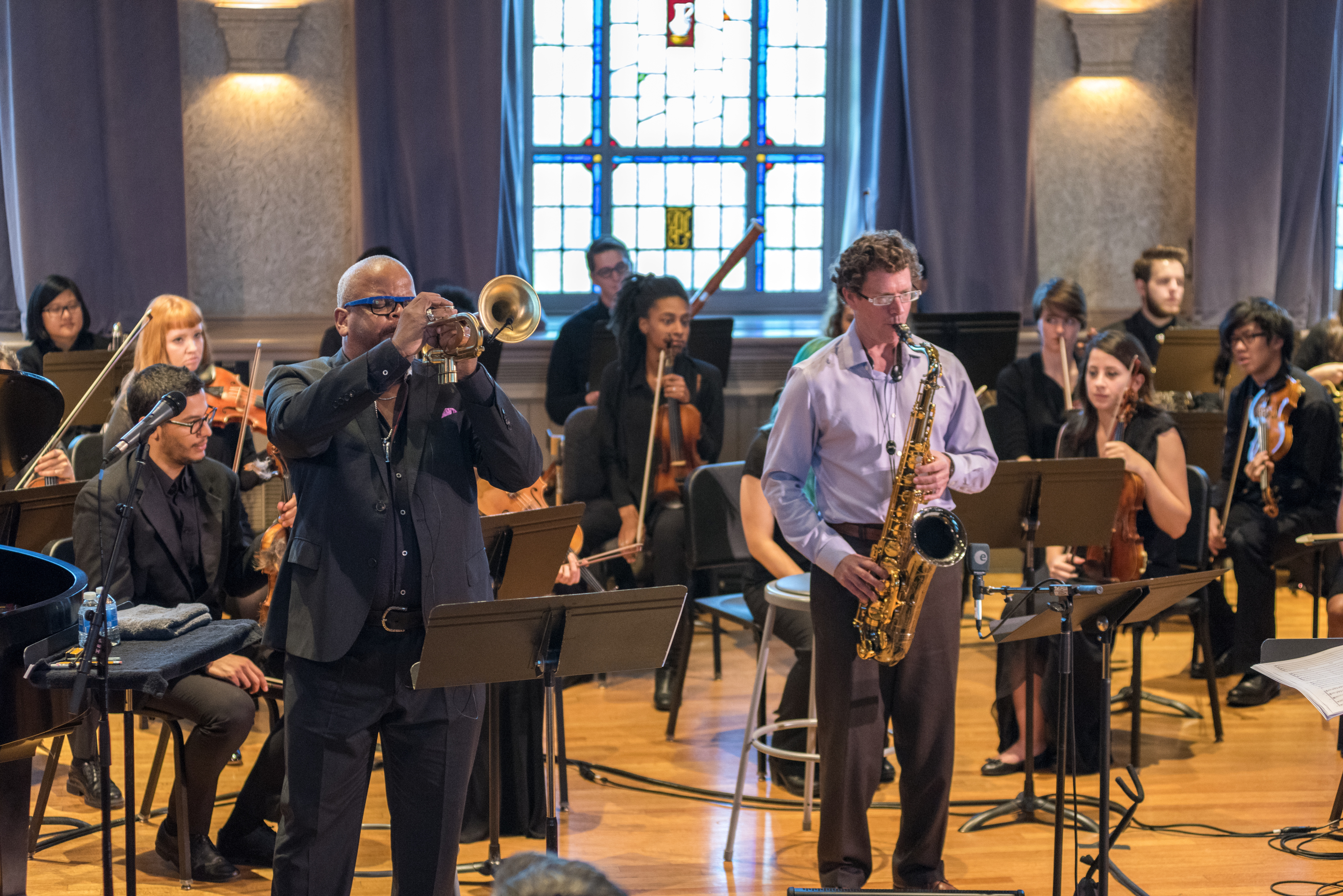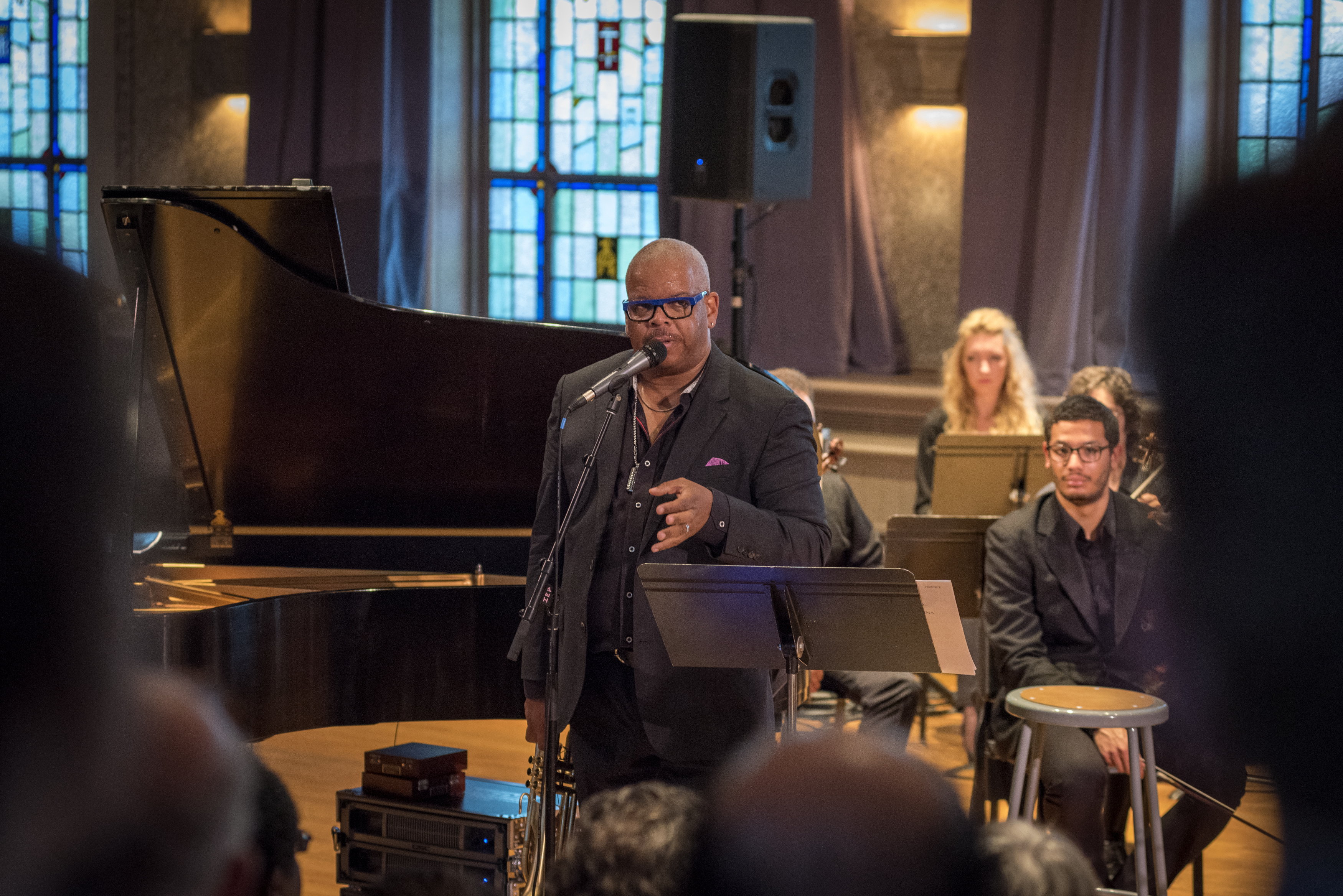 On Sunday, the New Orleans native performed his Grammy Award-winning piece, “A Tale of God’s Will: A Requiem for Katrina” to a packed Brooks Concert Hall, filled with students, faculty, and staff, alumni, and local community members. The Blanchard Quintet was joined by the Berklee Jazz in Film Orchestra to perform the expanded suite—a poignant meditation of the devastation suffered by New Orleans during Hurricane Katrina, originally conceived as the score for Spike Lee’s HBO documentary “When the Levees Broke.”