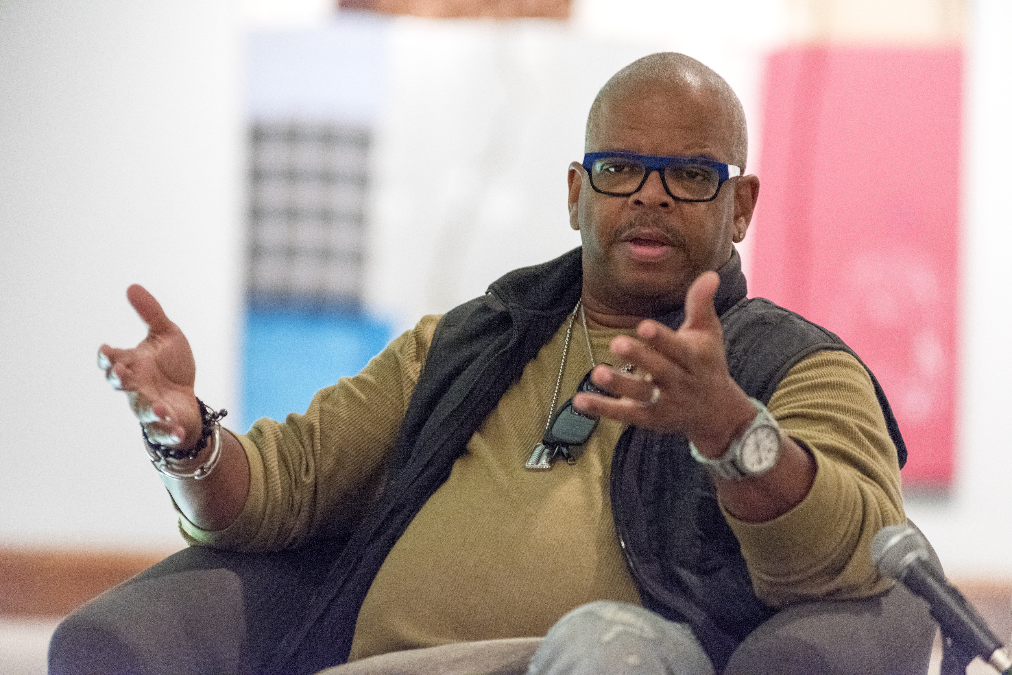 The performance also directly connected with the current Cantor Art Gallery exhibition, “Katrina Then and Now: Artists as Witness,” a two part installation which focuses on the relationship between Hurricane Katrina and visual art in New Orleans from 2005 to present. On Saturday, Blanchard joined Daina Cheyenne Harvey, assistant professor of sociology and curator of the exhibit, inside the gallery for a conversation about New Orleans, Hurricane Katrina and the artistic response in the aftermath of the disaster. Those in attendance had the unique opportunity to hear from Blanchard himself, surrounded by the work of contemporary artists featured in the second part of the Katrina exhibition, which will be on display through Dec. 18.