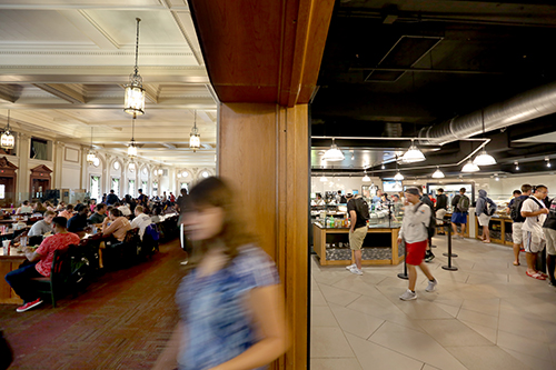 Kimball Hall has served as a place for students to take sustenance, meet friends, hang out and study for more than 80 years. Alumni who recall the beautiful seating area need not worry — the wooden tables, high ceilings, and chandeliers weren’t touched. Kimball seats 823.