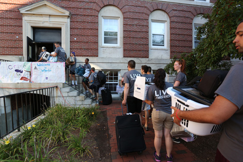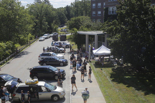 The steady stream of packed cars making their way up College Hill and snaking through Gate 7 on the morning of Aug. 29 signaled the start of another school year at Holy Cross.