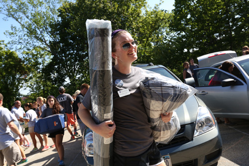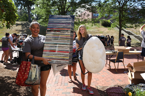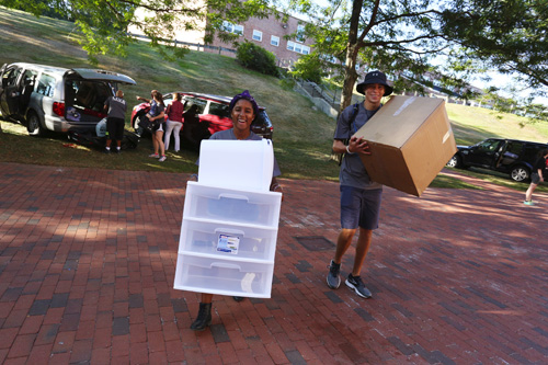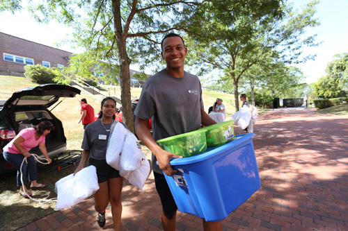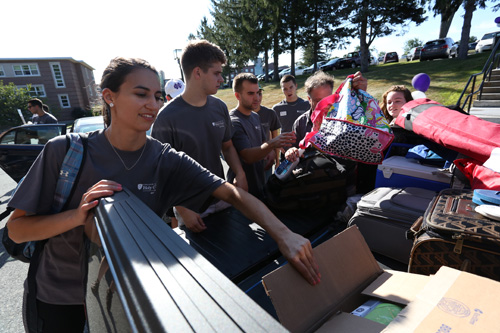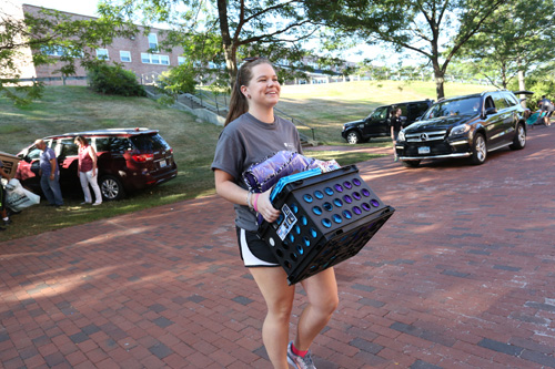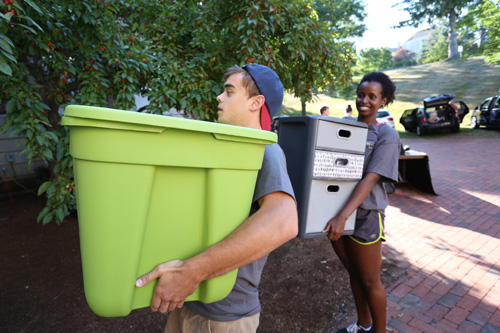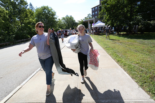 The 741 members of the Class of 2019 were greeted by 200 student leaders, athletic teams and alumni. Clad in gray T-shirts, the volunteers helped move students into their new rooms. Sunny skies and temperatures in the high-70s served as the perfect backdrop for move-in day.