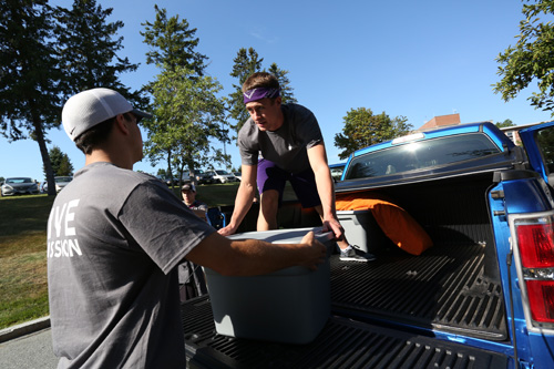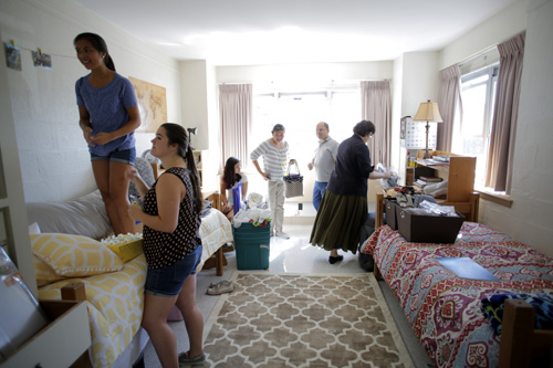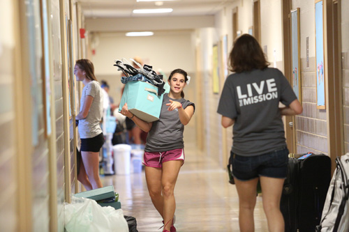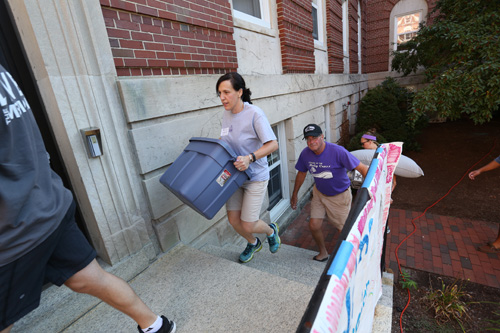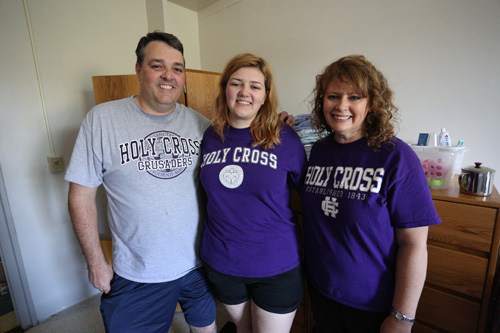 In addition to unpacking, students also took care of business needs, such as completing a first-year student survey and receiving their Holy Cross IDs. Receptions for new students and their families took place in the Hogan Campus Center Ballroom.