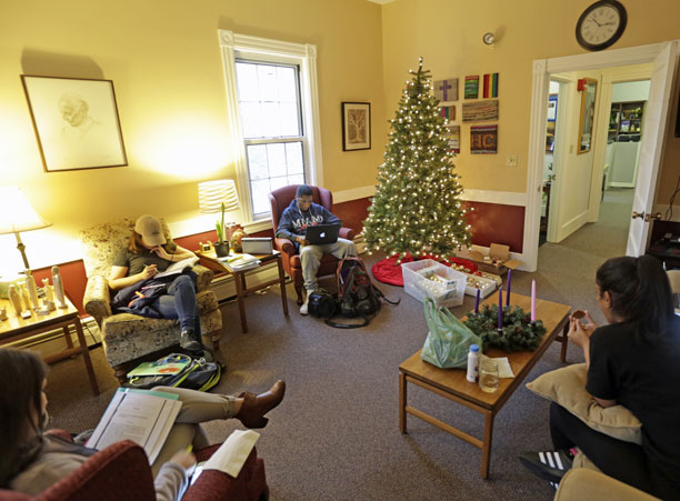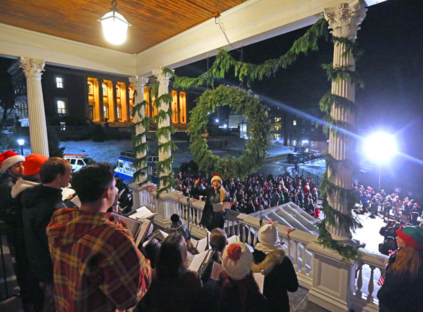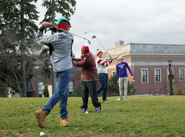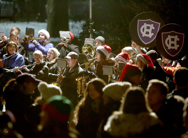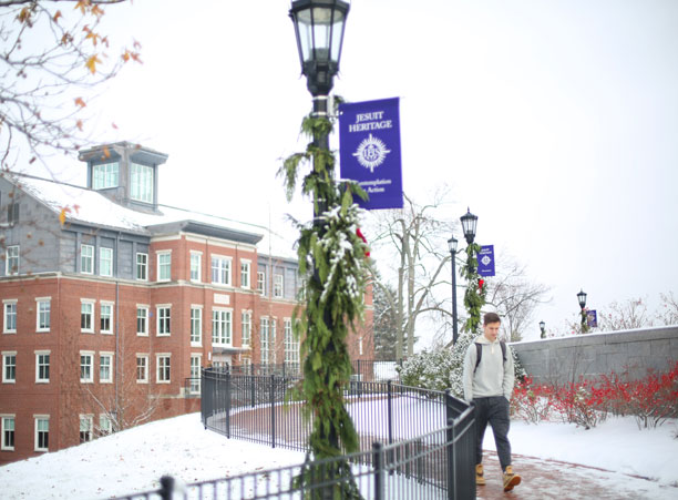 With lights strung and snow frosting the ivy-covered buildings of campus, the College of the Holy Cross has come to life this winter with the warmth of the holiday season.